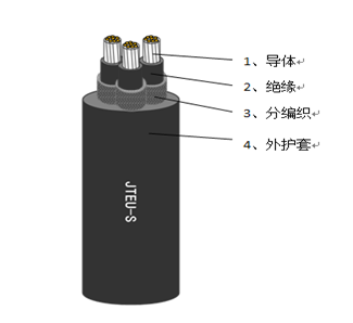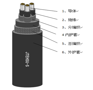 銅芯乙丙橡皮絕緣纖維分編織橡膠內(nèi)護套纖維總編織聚氨脂彈性體外護套卷筒用電纜