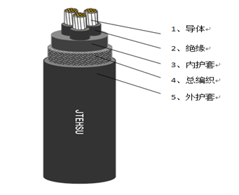 銅芯乙丙橡皮絕緣橡膠內(nèi)護套纖維總編織聚氨脂彈性體外護套卷筒用電纜