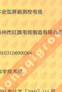 國(guó)家級(jí)火炬計(jì)劃項(xiàng)目證書(shū)(本安型屏蔽測(cè)控電纜)