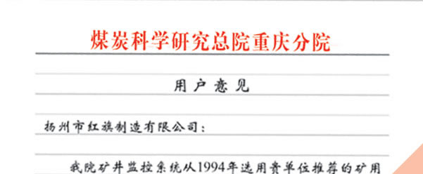 煤炭科學(xué)院總院重慶分院對我公司長期以來產(chǎn)品各項(xiàng)性能符合要求、質(zhì)量穩(wěn)定、交貨及時、服務(wù)周到的贊譽(yù)