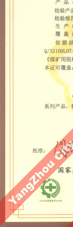 國家采煤機(jī)械質(zhì)量監(jiān)督檢驗(yàn)中心檢驗(yàn)合格證--煤礦用阻燃電纜(MHYVR,MHYVRP)