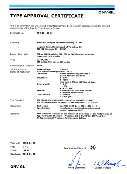 GL德國船級社GL認(rèn)證(船用電力電纜1)