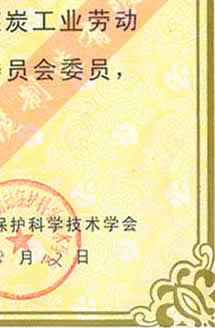 聘請董事長陳有新為中國煤碳工業(yè)勞動(dòng)保護(hù)科學(xué)技術(shù)學(xué)會(huì)安全監(jiān)控專業(yè)委員會(huì)委員證書