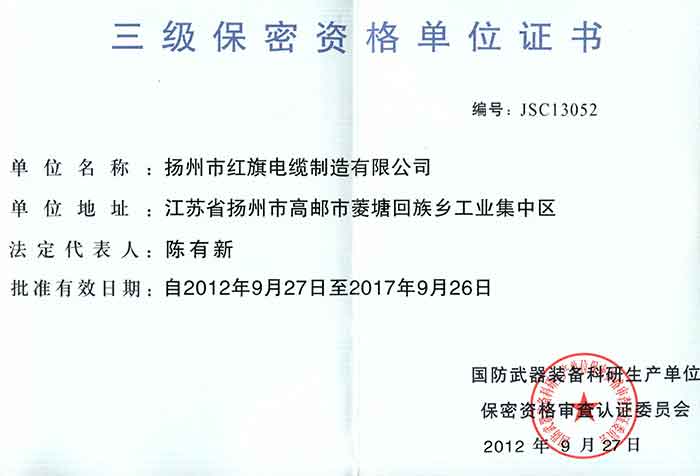 國防武器裝備科研生產(chǎn)三級(jí)保密資格單位證書