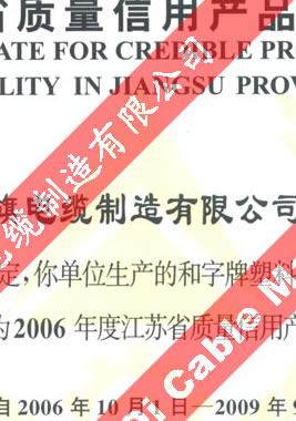 江蘇省質(zhì)量信用產(chǎn)品證書(shū)