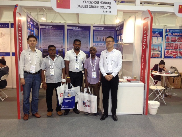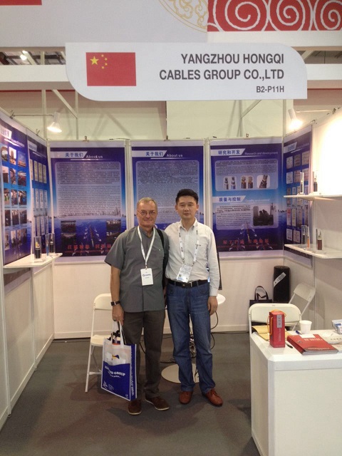公司的展臺上“和字”牌系列船用(船舶)電纜、海洋工程電纜吸引了來自許多不同國家客商的濃厚興趣,他們紛紛駐足詢盤,感慨地說ship cables Made in China,有的則表示了意向的采購計劃,有的與公司現(xiàn)場工作人員進行了合影留念。