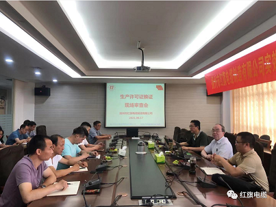 6月17日,徐州市產(chǎn)品質(zhì)量監(jiān)督檢驗中心(江蘇省質(zhì)檢院)專家崔祥柱、無錫市明珠電纜有限公司專家馮耀才、揚州市市場質(zhì)量監(jiān)督管理局產(chǎn)品質(zhì)量處處長田雨組成專家組蒞臨紅旗電纜公司進(jìn)行生產(chǎn)許可證換證現(xiàn)場審查。紅旗電纜公司總經(jīng)理陳冠瑜、副總經(jīng)理曾廣彬以及各部門負(fù)責(zé)人配合專家組審核。